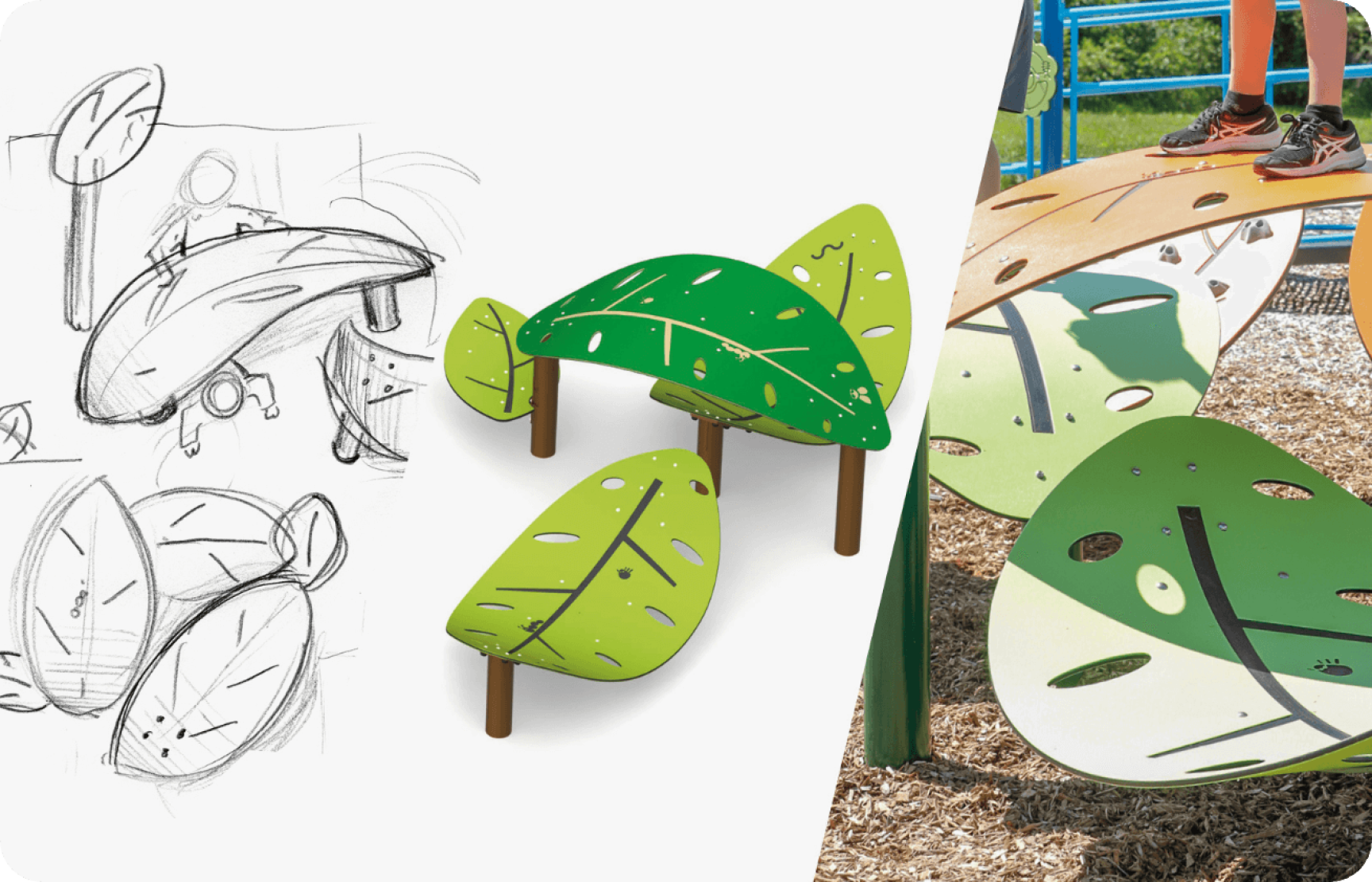 Our team relies on leading designers and technicians to design original and innovative play equipment, thus guaranteeing exceptional quality. We also create themed play areas that stimulate children's imagination on a daily basis.