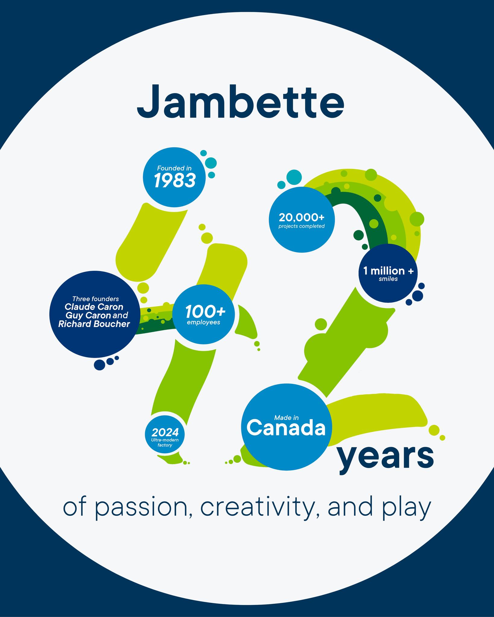 Founded on June 28, 1983, Jambette began as a small local business with a big dream: to create play spaces where children could laugh, climb, imagine, and grow. Four decades later, that dream continues to thrive: bigger, bolder, and more inspiring than ever.